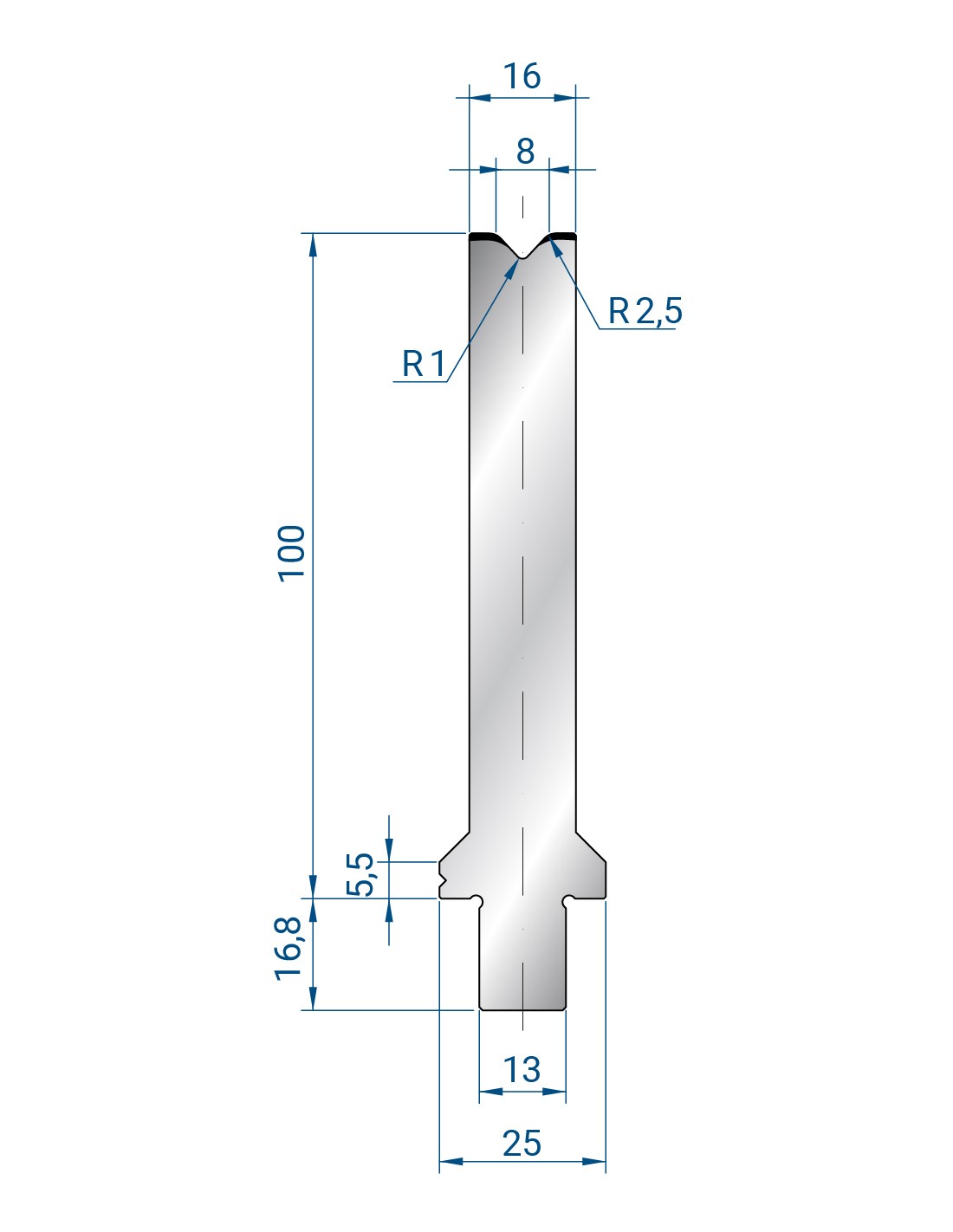 Гибочный инструмент TRUMPF-WILA – система инструмента с верхней установкой и боковыми фиксаторами (защелками) для закрепления в держателях. Благодаря повсеместному развитию и использованию в листогибочных станках TRUMPF и SAFAN система считается очень популярной с использованием длинных пуансонов, и, как следствие, возможностью длинных полок.